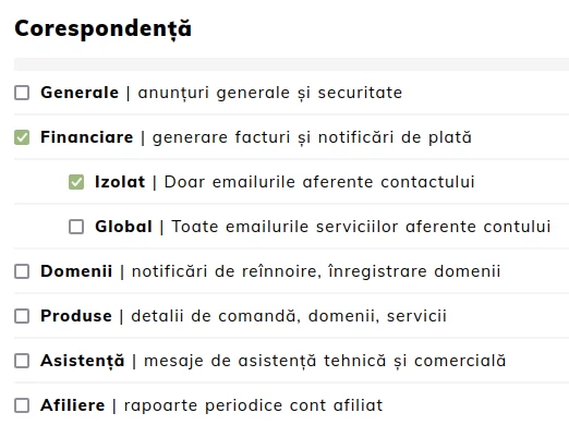Una subcuenta puede ser asignada a uno o más productos, por lo tanto, el cliente en cuestión será notificado automáticamente por correo electrónico sobre cada aspecto de naturaleza comercial. Aunque se aísle una subcuenta a un servicio, el titular de la cuenta seguirá recibiendo todas las notificaciones relacionadas con esta y tendrá la posibilidad de actualizar en cualquier momento los datos de las proformas emitidas, si se eligió un contacto incorrecto, o si los datos han sufrido modificaciones en el transcurso del tiempo.