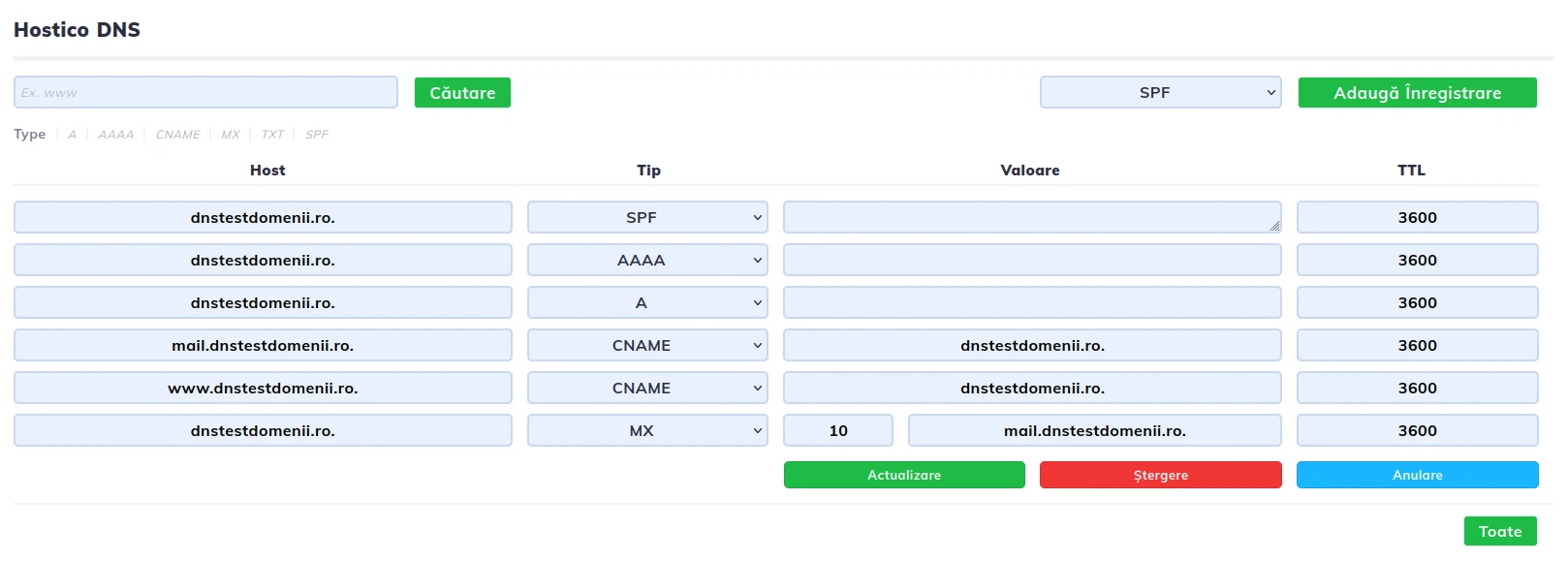 Se pueden modificar independientemente los siguientes tipos de înregistrări DNS: